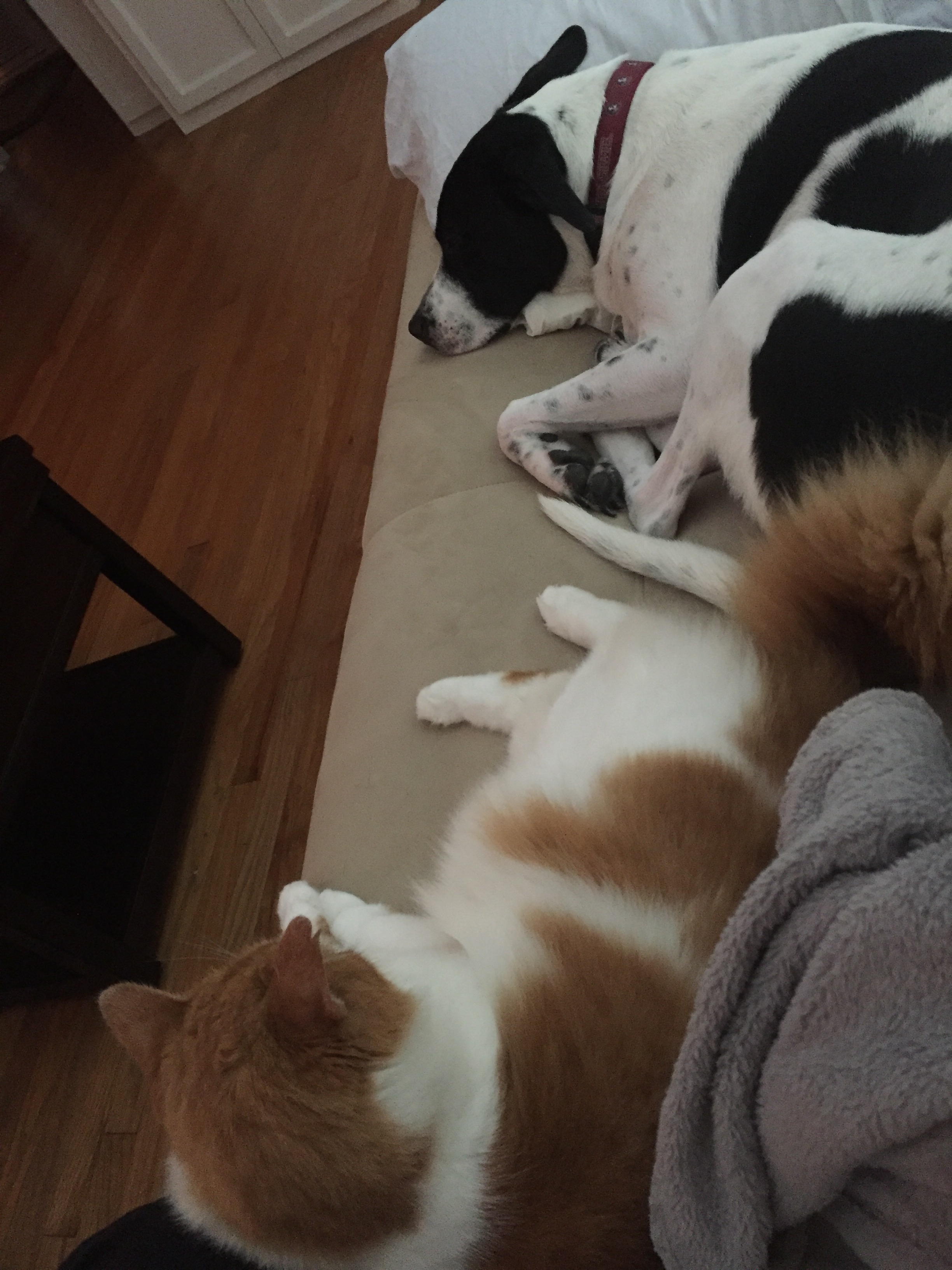 - The dog and cat are so confused. The dog will only “go” across the street about 4 houses down. The cat peed our friend’s bed. O. M. G. He has never done that.