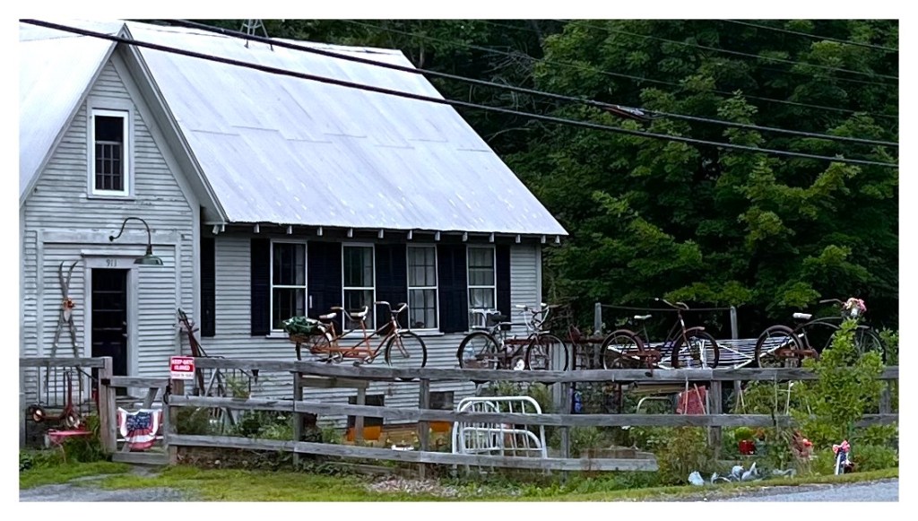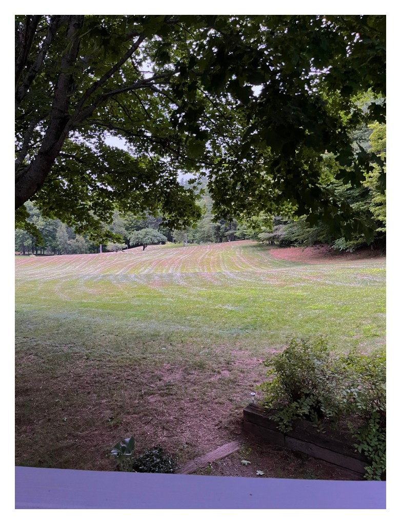 Our Airbnb is great, has a 10 acre meadow on one side, another expansive meadow on the other side and tons of trails surrounding it; our dog is in leash-free heaven. He chases the robins, explores endlessly and samples various nap locales. Surprisingly, he joined us willingly for a car ride in search of covered bridges and exploring some nearby towns today—the epic drive in his car prison long forgotten.