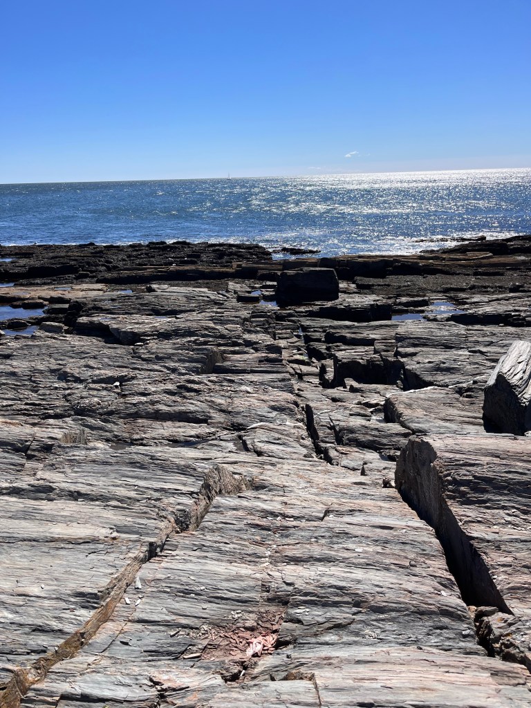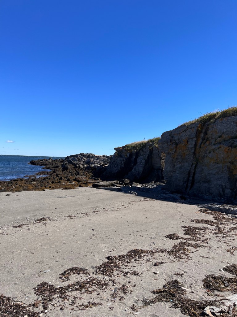 Something about the beach, no matter where you go, it never disappoints. Our day was bright blue sky and breezy/windy (depending on where you were) and the rocky coastline, choppy seas, Navy jets flying over on practice runs (I hope) were just breathtaking. It was low tide when we were on the beaches and it is hard to imagine high tide much less angry seas in the midst of a Nor’easter but I can imagine that it is beautifully magnificent in an entirely different way.