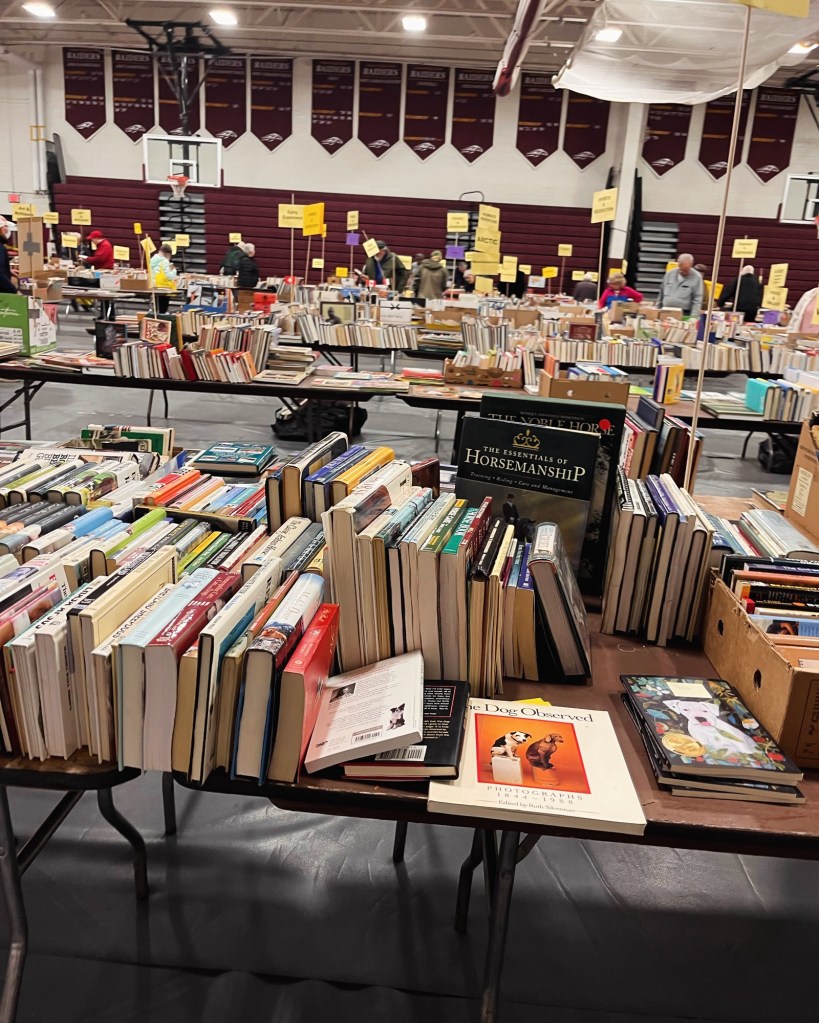 Lastly, this week I went to the annual 5 Colleges Book Sale and wow! I was so blown away. I knew it would be big, but it was really BIG! The event is 4 days long and held at the local high school. The cafeteria, gymnasium, classrooms were filled with books spilling along hallways, organized by genre and accompanied by CDs, puzzles and a variety of “oddments”. I spent about an hour with my friend perusing and filling our bags and finally hit a wall, checking out with 2 piles of books at $30!!! Will definitely be doing that again next year!! But also Sunday is 1/2 price day, so…………….
