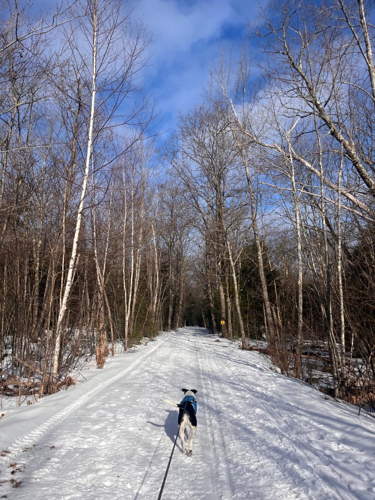 I don’t particularly love snowmobiling, but the fresh snow on the trail was really something to behold. We were literally flying through a real-life snow globe. I was grateful for a full suit, boots and hand warmers on the handles and enjoyed following bear tracks for about a 1/2 mile or so on the way back. The warm winter has everyone confused!!! I regret not making Hubs stop so I could memorialize the paw prints, you’ll just have to trust me. I was glad we only saw the tracks and not the owner.