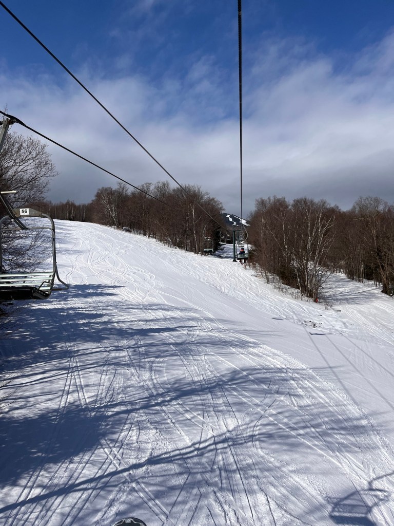 Since it appeared that winter was coming to a rapid close with temps regularly in the 40 and intermittent rain paired with it eating the snow a little more each day, we enjoyed snowmobile trails for walking Bandit and took a day to visit Stowe, VT for a day of skiing and exploring. It was our first time visiting and the mountain was phenomenal for me with long green runs, limited crowds and opportunity aplenty to enjoy my improving ski skills. After a few hours of increasingly wet snow, my knee cried uncle and we called it a day. We scouted out the resort, enjoyed a gondola ride to view the shops, and ski runs on the other side, enjoyed some coffee and I grabbed a sticker for my collection! Side note: Hubby made it back to ski Stowe a few weeks later and had a phenomenal day so we will be sure to visit again next ski season (and later this summer on our anniversary trip, but that’s another post). On the way home, we stopped at Ben & Jerry’s factory but passed on ice cream because we had our hearts set on a fat burger after a morning of skiing and exploring and we were not disappointed in McGillicuddy’s Pub in Waterbury, VT. Highly recommend!