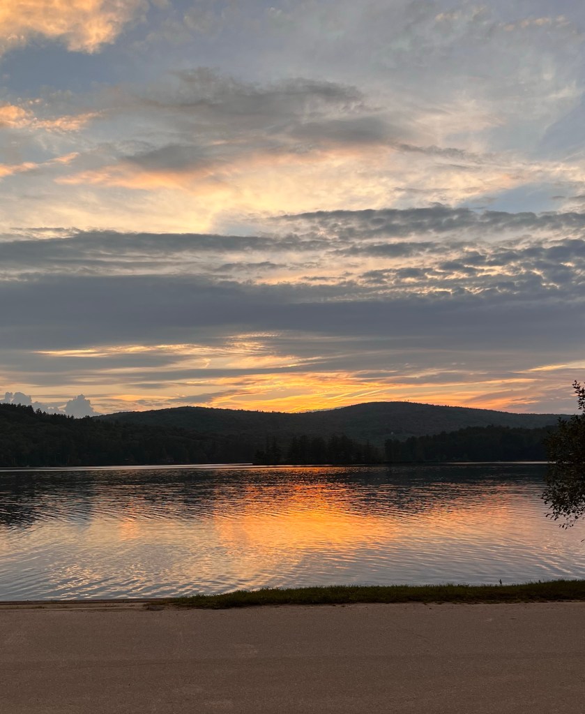 One of my favorite people at my Boston contract is an accomplished landscape artist and she held her annual garden party to show off summer at her home. Breathtaking and inspiring!! I felt so lucky to be able to attend.At the end of July we took a day trip to the coast of NH with one of my NH work friends to see The Dirty Heads at the Casino Ballroom in Hampton Beach. While there, we explored lovely Rye, NH which runs along the coast. We filled the day with: lobster rolls, ice cream, a local marina, jetty looking out to the Isles of Shoals, stunning Fuller gardens and a gorgeous church overlooking the sea from 1877. Every Friday night I commuted back to NH. We did a little landscaping between rainy days, adding in hydrangea, roses, lilies and hostas to our front garden. Additionally, we watched our wee raspberries and blueberries grow and feed our birds Bike rides and walks on rails to trails providing no shortage of scenery to explore.Back in Boston, my nightly sunset view from my room, Mass at Our lady of Perpetual Help, the Isabella Steward Gardner palace and museum—best $20 ever—I’ll be back!! And lunch in the North End, my favorite part of Boston. OUR GIRLS CAME TO VISIT!!! We spent a day exploring Boston with a Red Sox game, Rose garden and various spots around the city. Paddleboarding and hiking in NH, with a meteor shower and stargazing, ice cream and lots of hugs and snuggles. Great visit!!!We’ve had a couple of fires under the stars. MY MOM AND HER HUBBY CAME TO VISIT! A fun day in Boston hitting up some historical sites and experiencing the festival of St. Anthony in the North End—such fun!! My last day to explore led me criss-crossing Boston to finish up onboarding business, a beautiful door in Cambridge, the Harvard Coop and a yummy early dinner in Harvard Square.My last week in Boston and I did a lot of back and forth to visit with Mom. Hubs and I biked some more, hiked some more, Mom and John and I shopped at Vermont country store, enjoyed a yummy dinner together and my last day in Boston started at 3 a.m. in NH, surprise celebration with a Panera breakfast and finished up in NH, arriving at 830p.m. And so starts the next NH assignment!Back in NH and we caught a spectacular sunset over a favorite lake spot, hiked a new part of the SRK Greenway on a foggy day and gifted with a foggy, eerie lake lunch spot. Beautiful stone bridge at the trail head and today……68degrees and sunny—-long sleeves and pants for a lunch hike—Hubs was fine with shorts. It’s good to be back.
