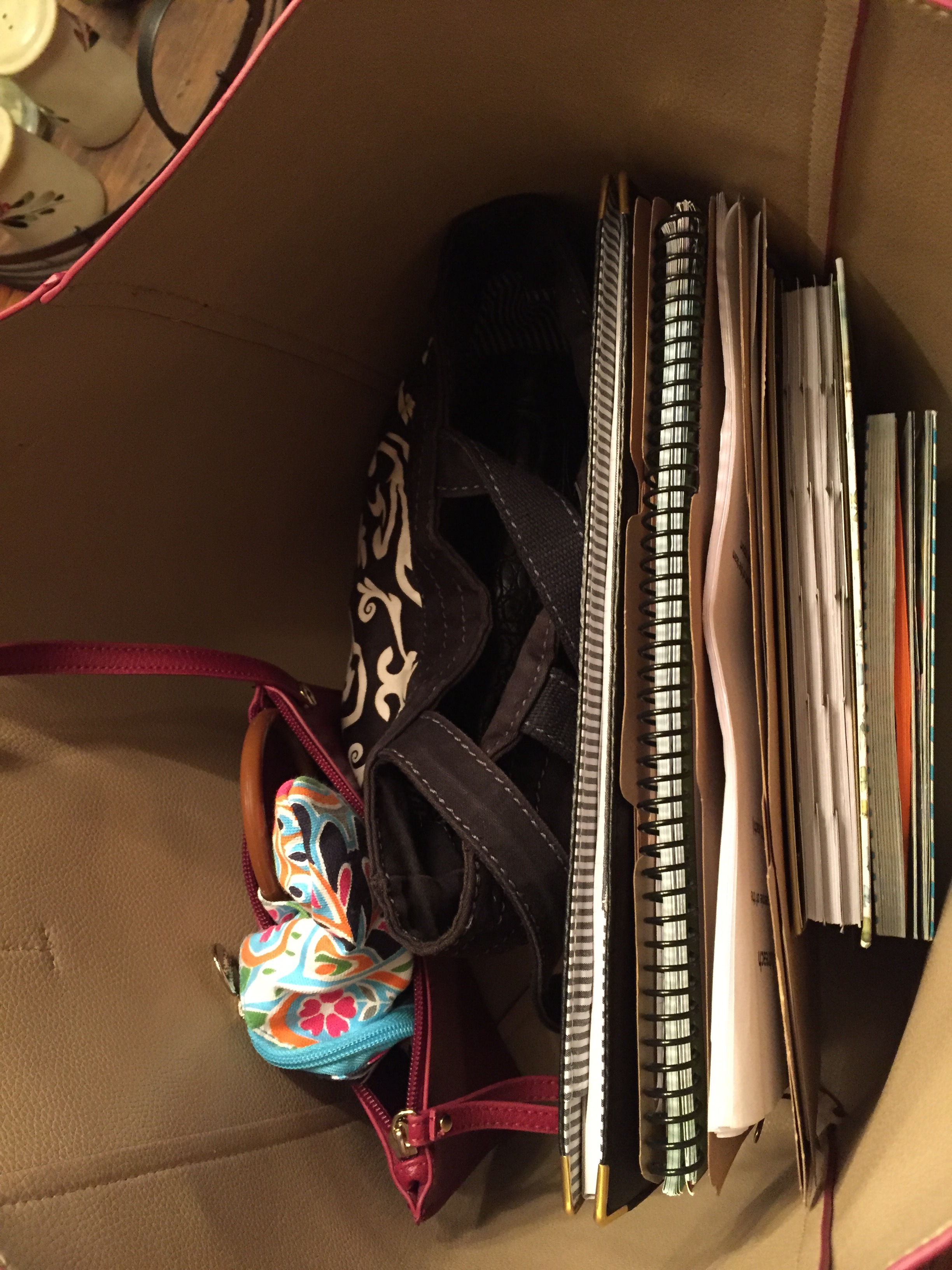 Today, I started off small. One section. Cleaned out an armoire that is destined to go to a new home in the near future and made a trunkful donation to our church’s thrift store. This also gave me an additional tool for my mobile office (AKA purse), so I am truly on fire now. Look out!!!
