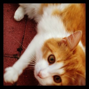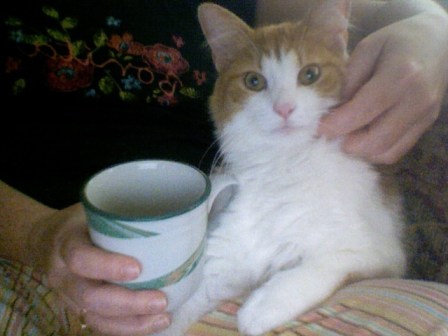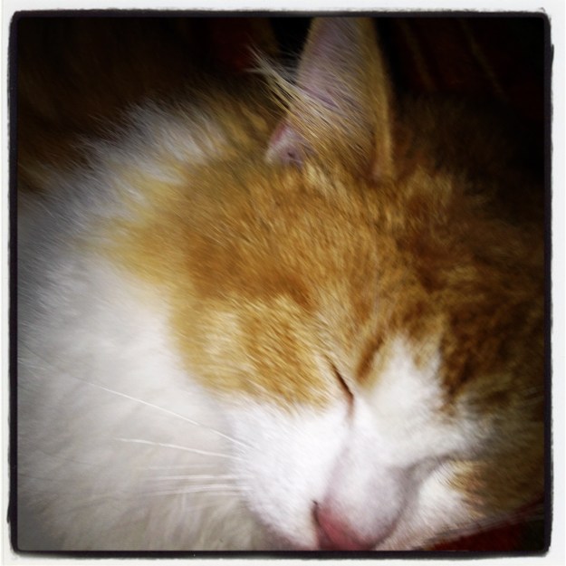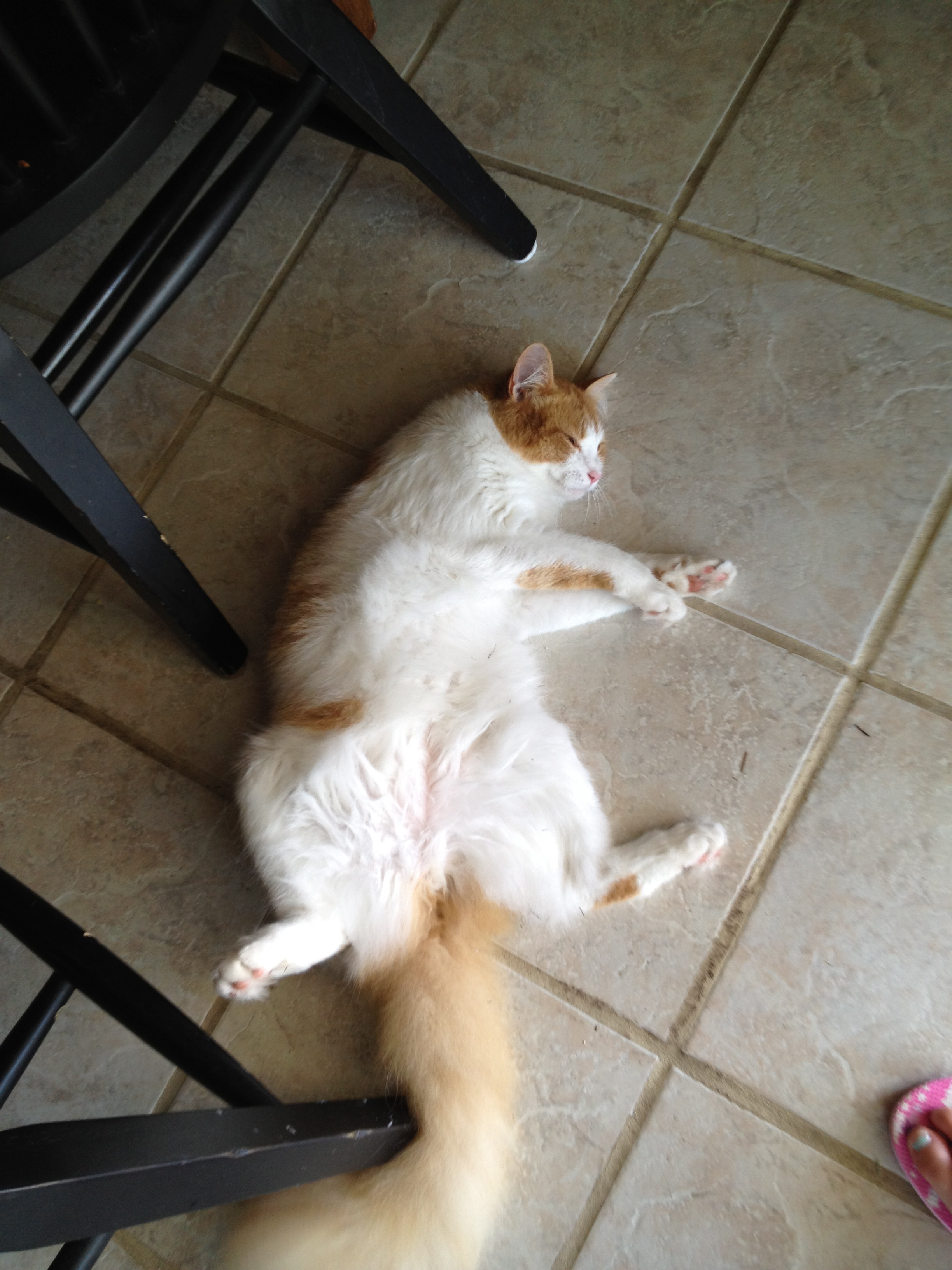And the cat was truly enjoying snuggling up on humans all day….after he slept off his all-night out and about the neighborhood, that is…