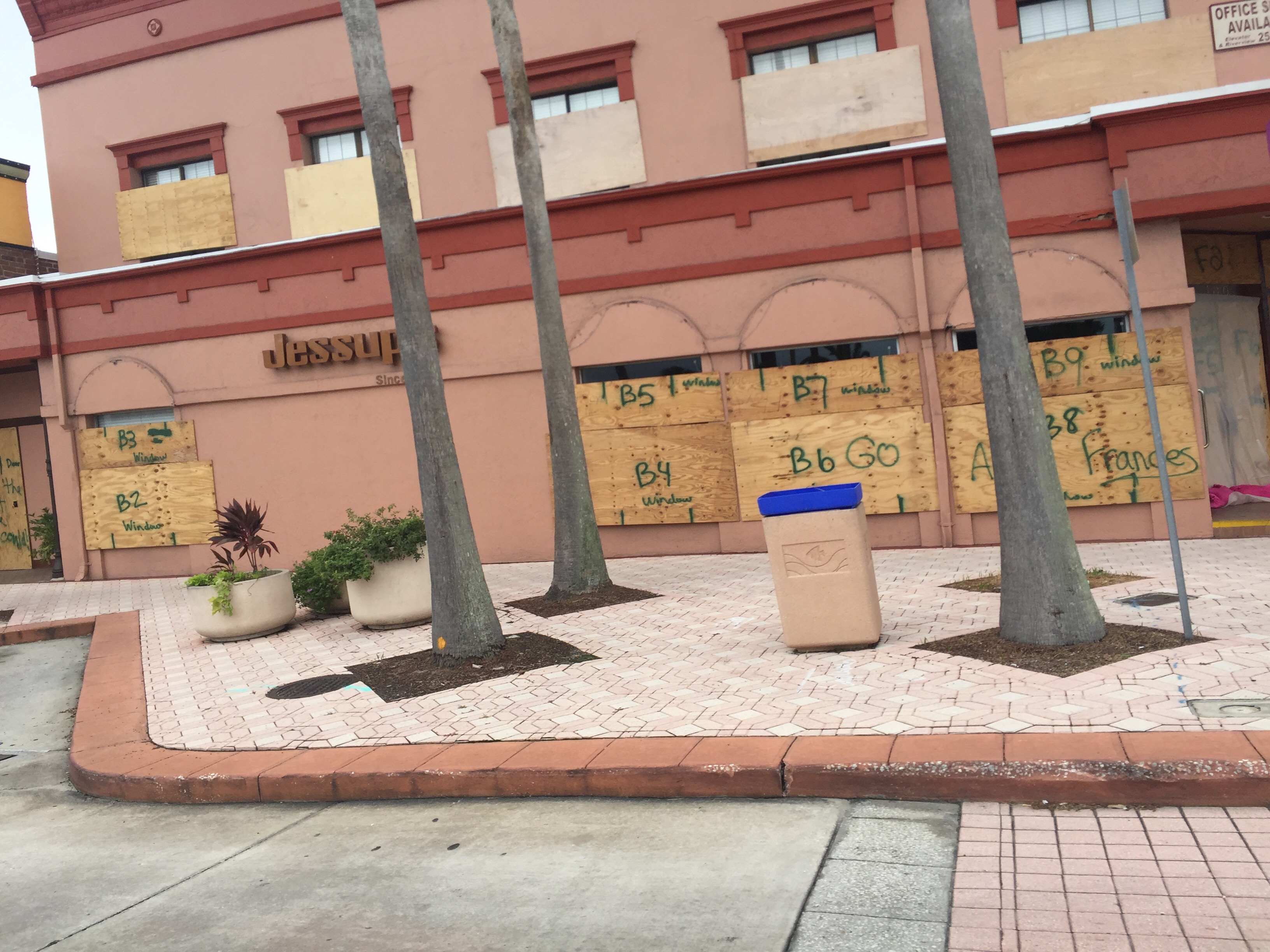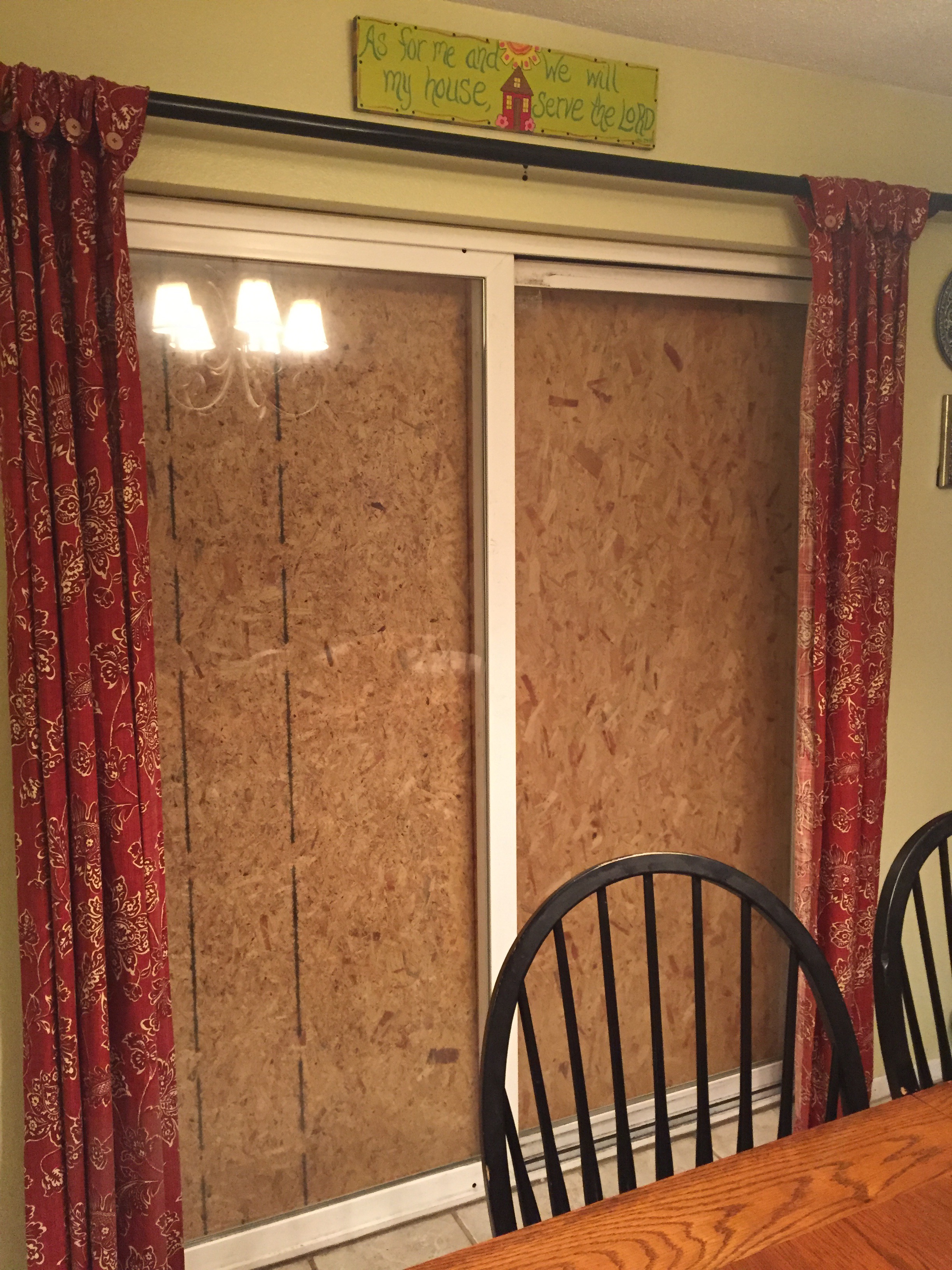 At the end of the week we decided to board up and…..no plywood. well, there was plywood coming, but basically you have to sit and wait for the truck. Hubby improvised and bought pallets and constructed window covering. While on the 3rd window, our oldest son got a lead on plywood and made the trip with a friend to grab it up. And of course, refill gas, which is now becoming hit and miss throughout town.