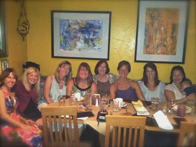 This picture captures a rare moment of togetherness recently, and marks the move of one friend and her family to Washington D.C. The fact that we were ALL able to make the dinner (with school over and summer ON, one with laryngitis, one leaving the next day with her husband and 6 kiddos on vacation, myself being 4 hours away, and one with a newborn) was an amazing accomplishment in itself–on a Wednesday night no less! It was a bittersweet dinner (saying goodbye is NEVER easy) however, we were ALL able to take turns “catching up” in a roundtable discussion and enjoy each other’s company, laughing at stories and enjoying super delicious food, too–BONUS!
