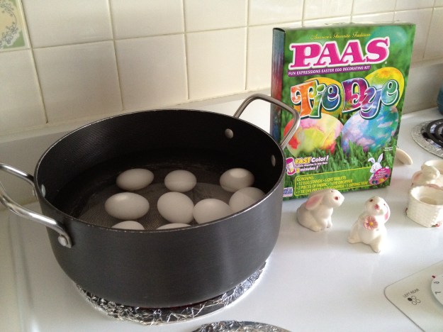 Easter eggs ready for dyeing. We don’t even hide the eggs anymore. The dye stains my fingers, and yet….we just can’t seem to drop this tradition. Something about writing on those eggs in white crayon, adding to color, mixing it up. Easter fun, here to stay.