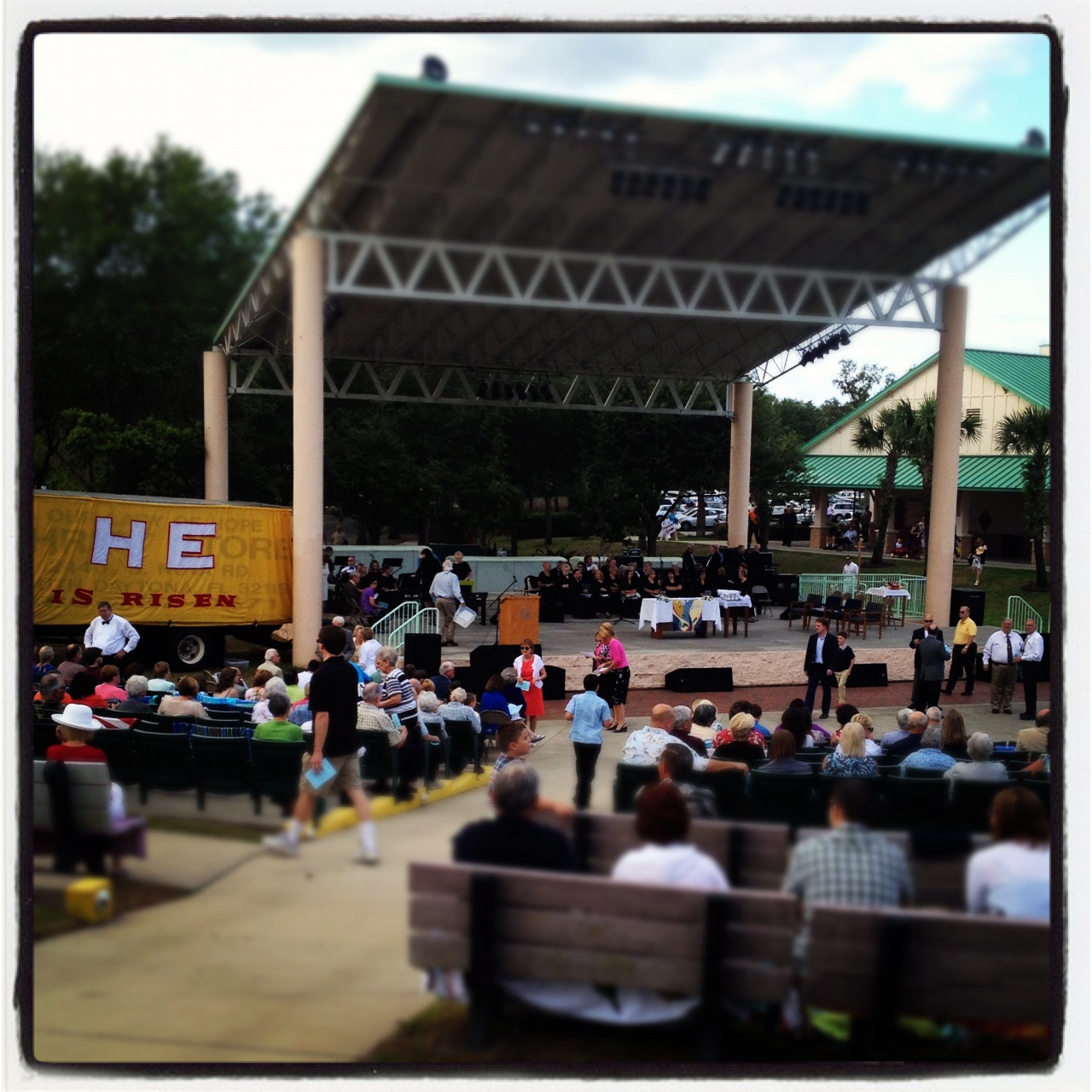 He is Risen, indeed! Gearing up for the annual outdoor Easter Mass.