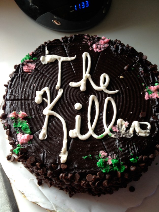 A gift from my dear friend. The “Killer Cake” from Toojays. She introduced me to this little lovely. Now I gave up Facebook for Lent and was not lacking in chocolate prior to Easter. But this. Oh. MY. This will hit that chocolate sweet spot like nothing you’ve ever known. As I was cutting the cake, the kids were giving me the “why-are -you-cutting-them-so-small” eyes; by the time our oldest was hitting the mid-way point he changed his mind and asked “Why did you cut them so big?”. Rich. If you ate the whole thing, it would live up to its name and kill you. Seriously.